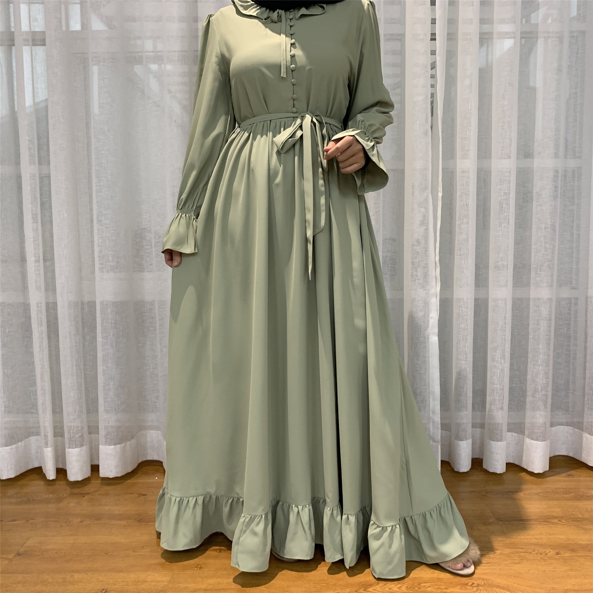 Solid Color Stitching Big Muslim Dress – Modest & Elegant Islamic Wear